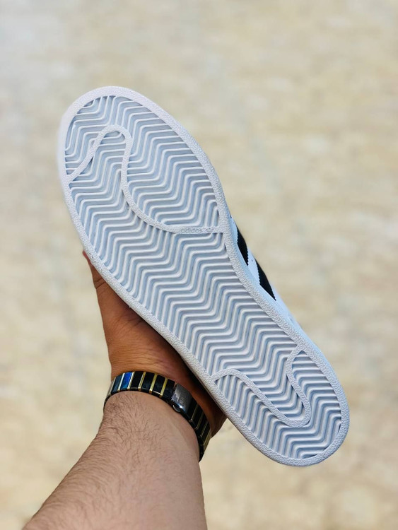 نکتهی قابل توجه دیگر در رابطه با زیره کفش آدیداس سوپراستار وجود لاستیک طبیعی و مستحکمی است که در برابر خراشیدگی و ساییدگی مقاوم است و از سر خوردن روی سطوح لیز جلوگیری میکند.
